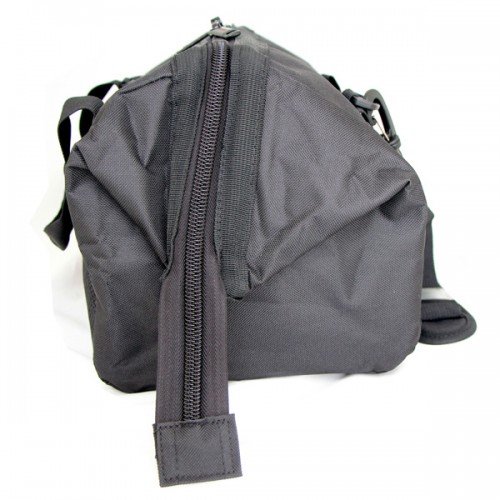 Сумка изготовлена из водоотталкивающего текстильного материала, имеет твердое дно и твердый металлический каркас с застежкой-молнией для легкого открывания сумки.